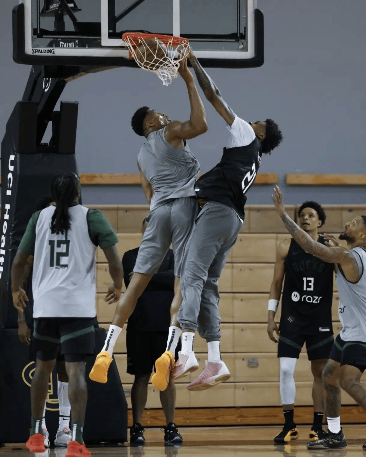 今日,鹿次轮秀根据球员官方晒出的泰勒视频,球队今年33号秀泰勒-史密斯在训练中隔扣字母哥。小伙